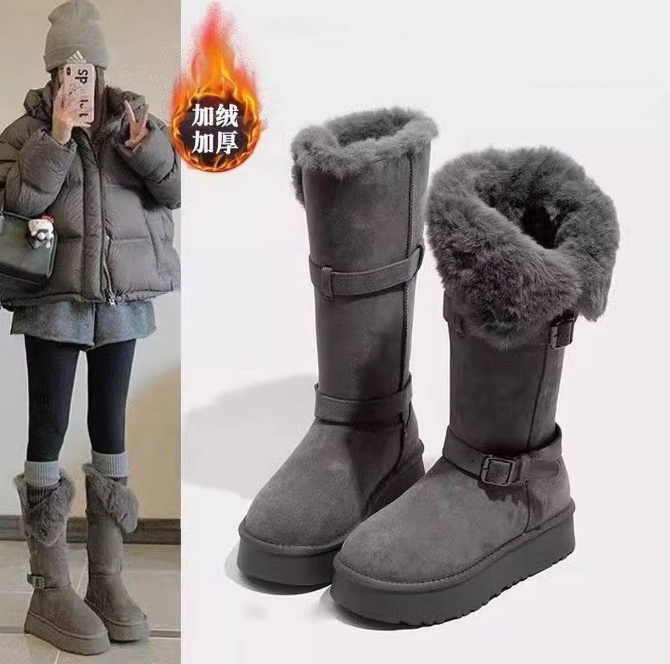 Designed for cold days and trendy vibes! These high-top snow boots boast plush insulation to keep your feet cozy, even in frigid temperatures. The anti-slip rubber outsole guarantees stable steps on snow and ice, while the soft gray shade pairs seamlessly with any winter ensemble—from jeans to puffer coats. Featuring a snug ankle fit and durable waterproof upper, they’re ideal for daily commutes, weekend getaways, or casual strolls. Comfort meets practicality: stride through winter with confidence, no style compromised!